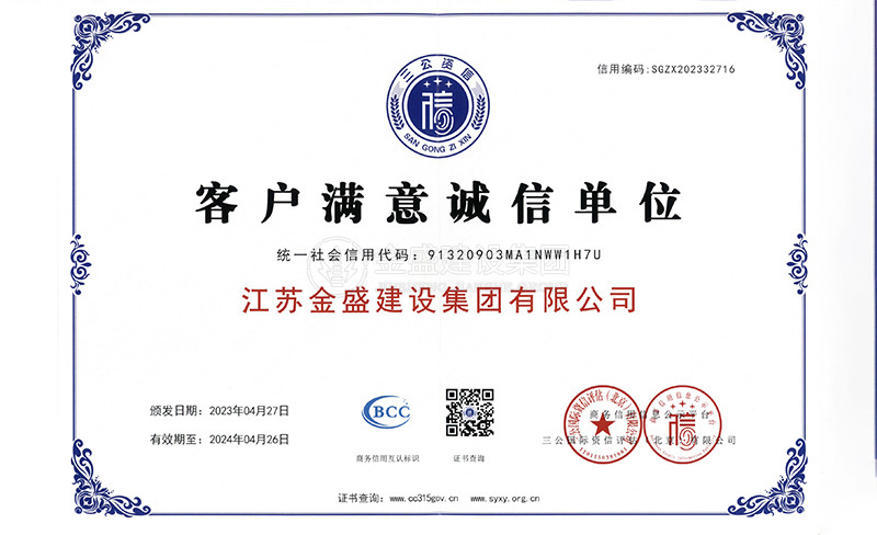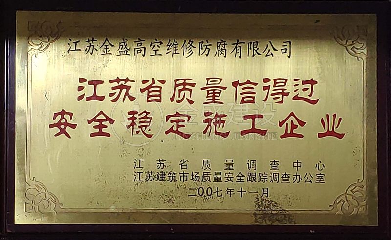 • 2007年江蘇省質量信得過安全穩(wěn)定施工企業