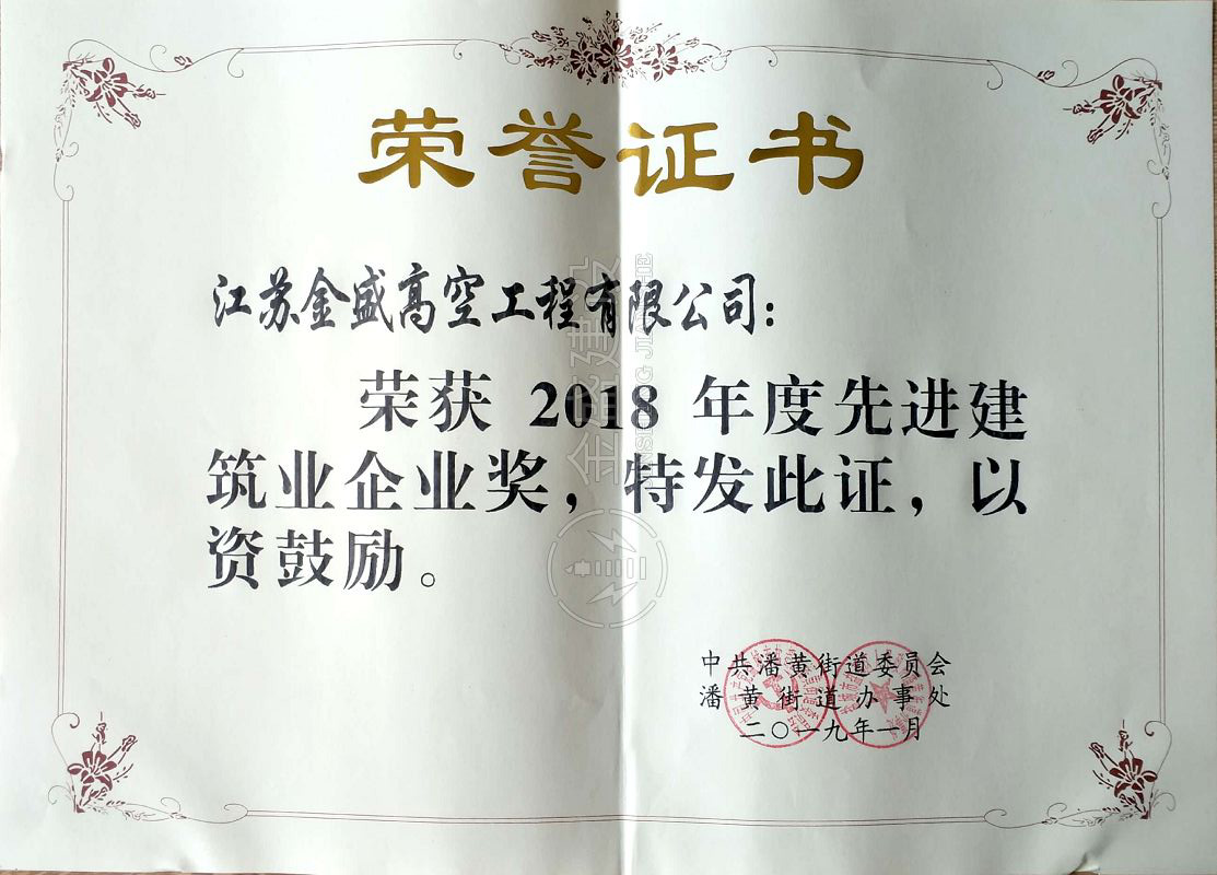 • 2013年江蘇質量安全放心高空工程企業